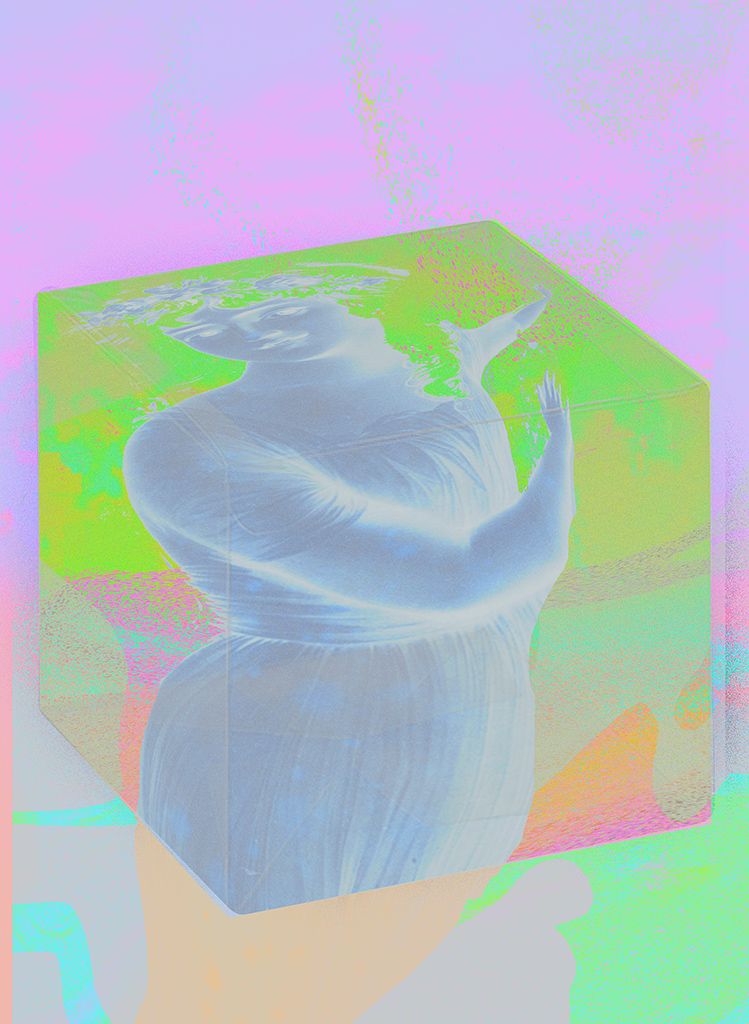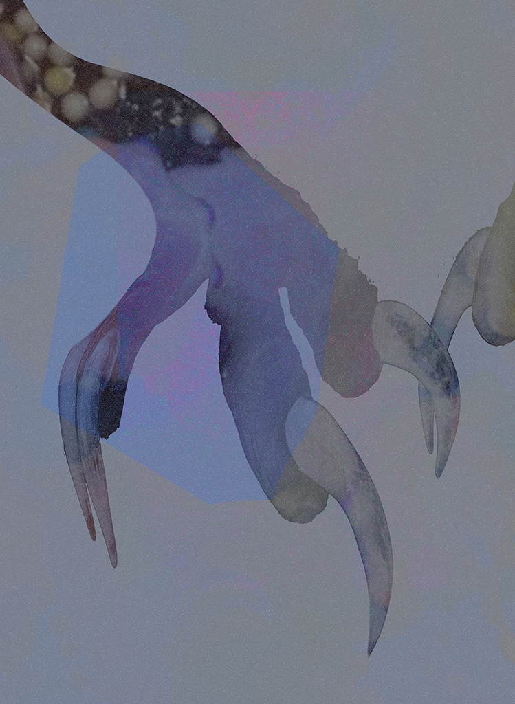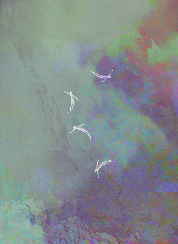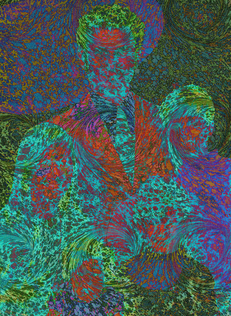 Chiudo gli occhi e comincio a vedere delle zone luminose, lampeggianti. / Sento di essere vicino a qualcosa di immensamente grande / come un albero con delle foglie giganti che mi avvolge in un paesaggio liquido / si accartoccia / e ci finisco dentro. / Sento una sensazione quasi fisica / al limite tra il piacere e il soffocante / che mi costringe a spalancare gli occhi.